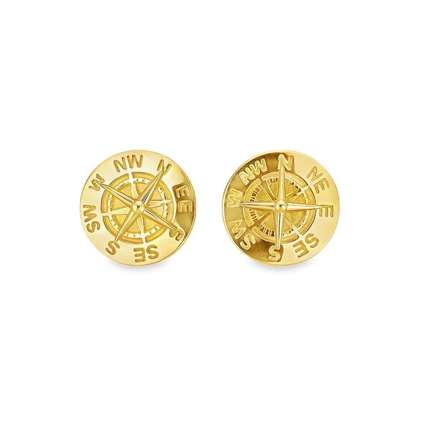 (941) 497-633114K Yellow Gold Engraved Compass Stud Earrings