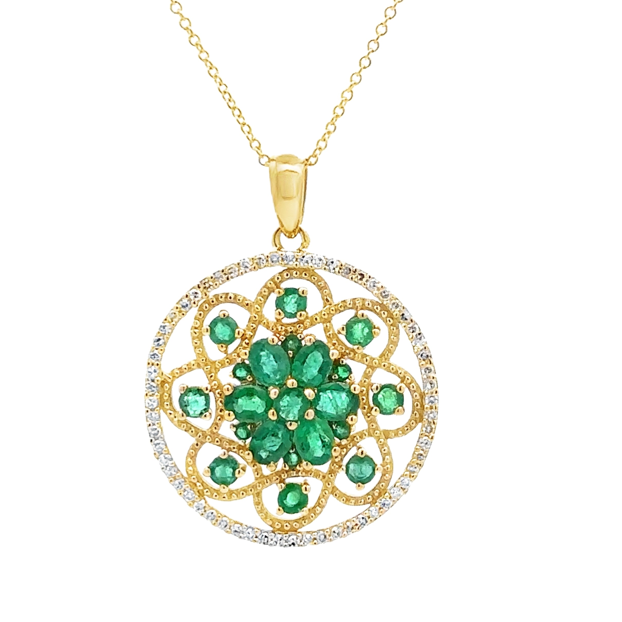 4. 14K Yellow Gold Effy Emerald And Diamond Cluster Circle Pendant With Cable Chain Necklace