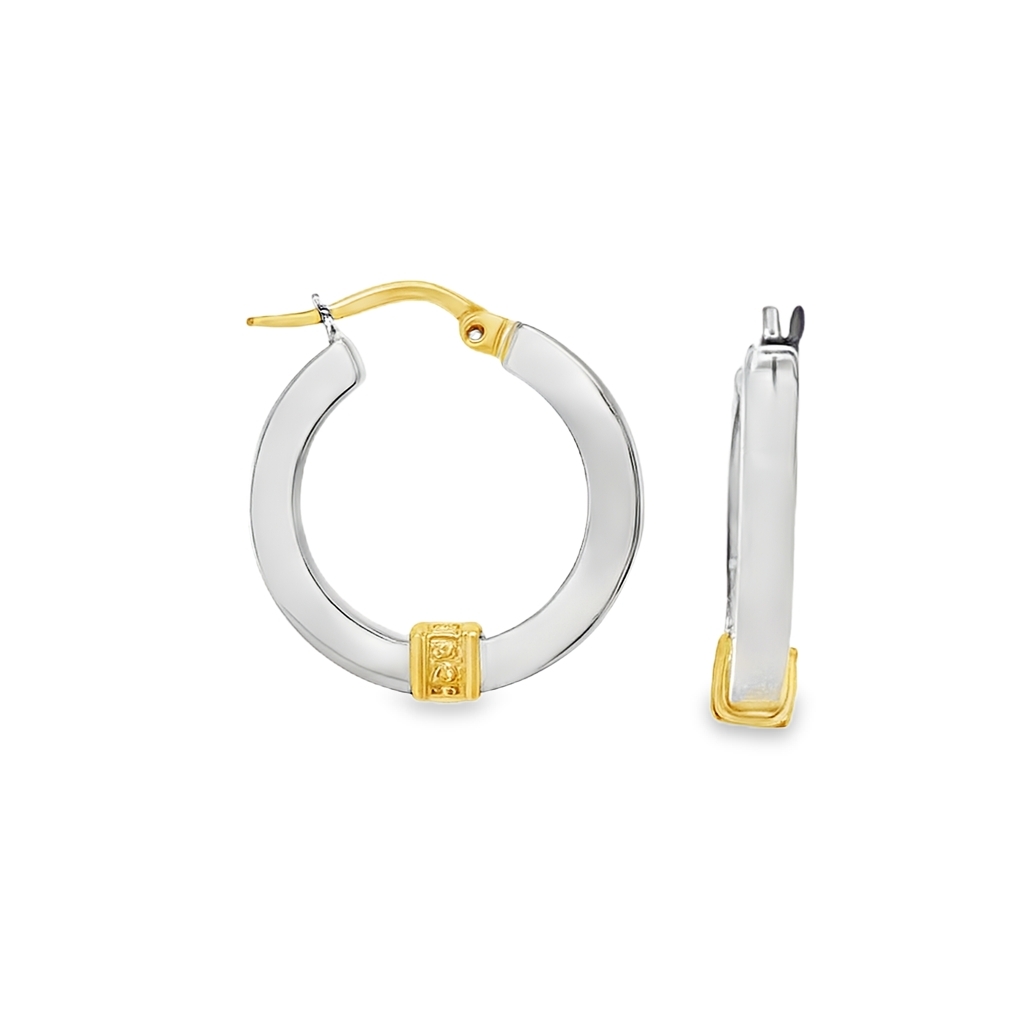 (941) 497-633114K Two Tone Gold 3.2mm x 20mm Classic Hoop Earrings