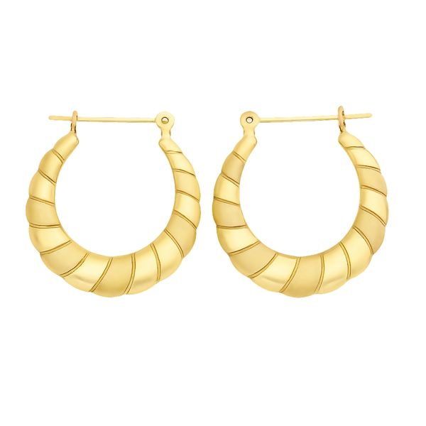 (941) 497-633114K Yellow Gold Brushed & Polished Scallop Hoop Earrings