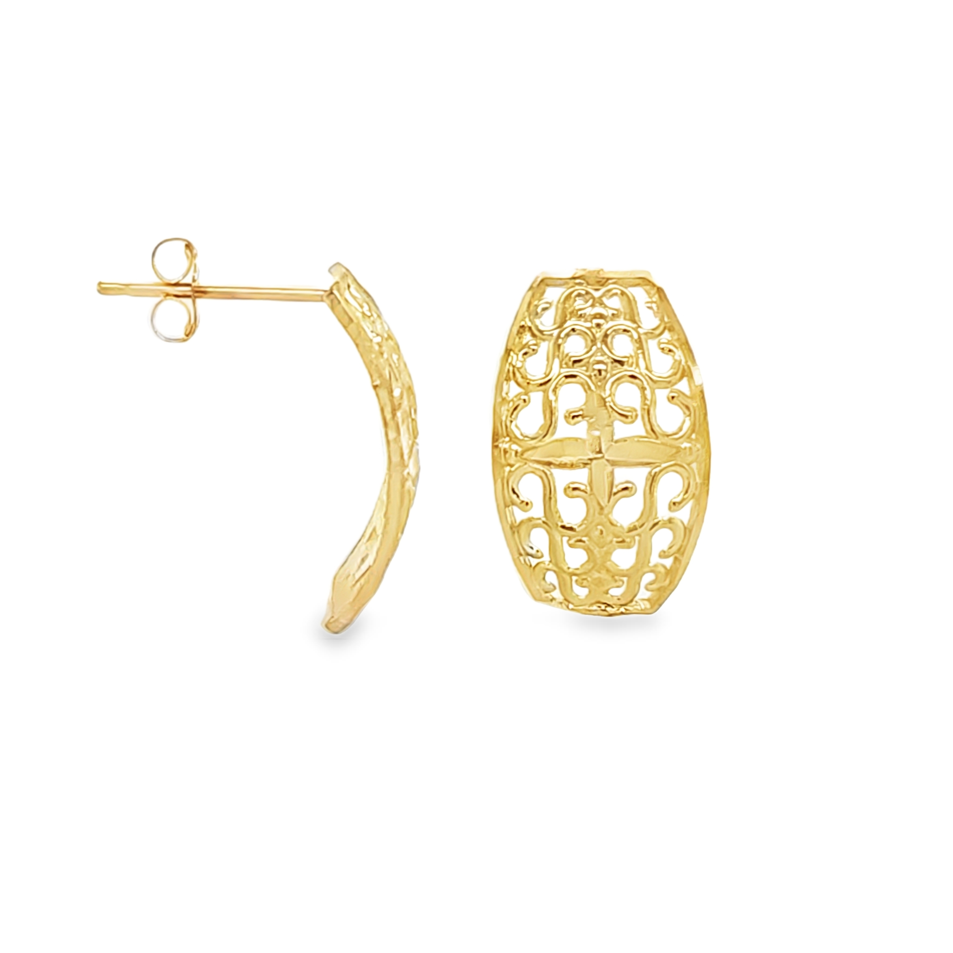 (941) 497-633114K Yellow Gold Filigree Half-Hoop Earrings – 0.8 DWT | Elegant Vintage-Inspired Gold Hoops