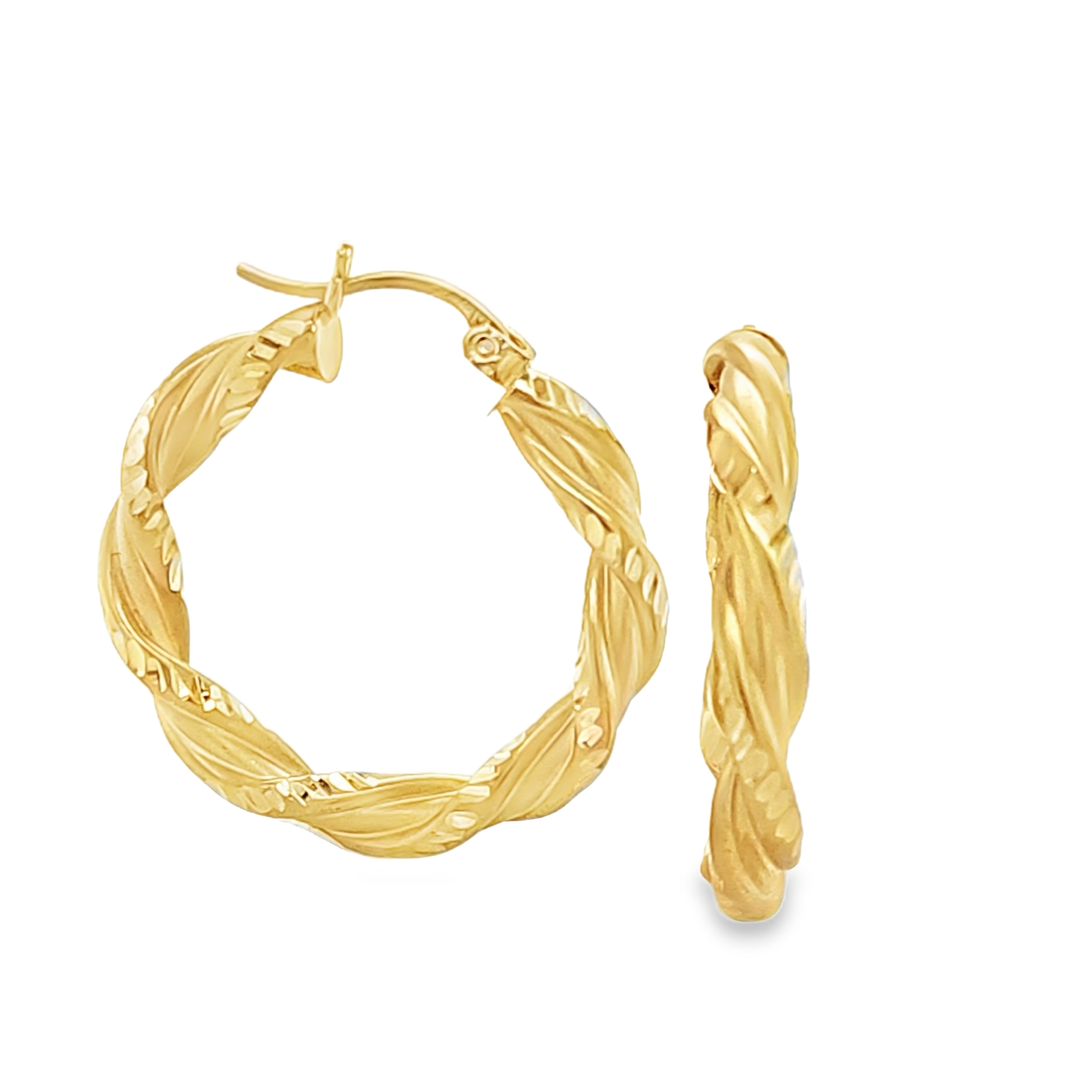 (941) 497-633114K Yellow Gold Twisted Hoop Earrings – 4.2mm x 28mm, 2.2 DWT | Bold Textured Gold Hoops